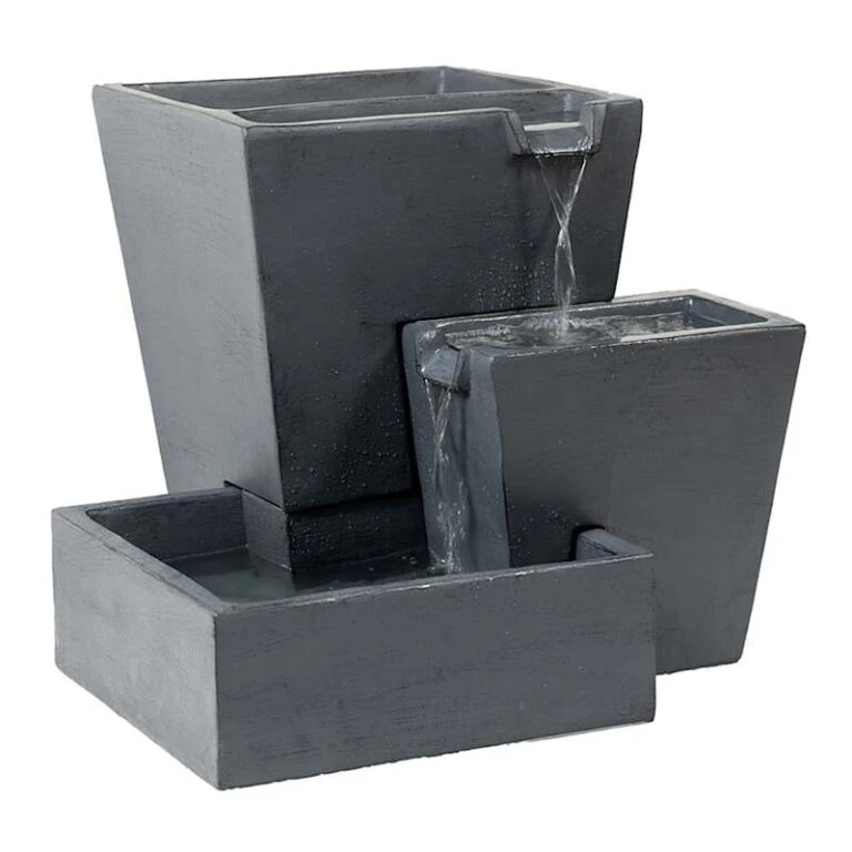 The 3-Tier Modern Tapered Fountain, measuring 22×27 inches, is a sleek and contemporary water feature designed to elevate the aesthetic of any space. This fountain features three progressively tapered levels that create a stunning visual flow of water, offering both a soothing sound and a stylish focal point for gardens, patios, or indoor environments.