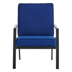 2-Piece Navy Blue Ticking Striped Gusseted Outdoor Deep Seat Cushion Set