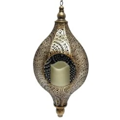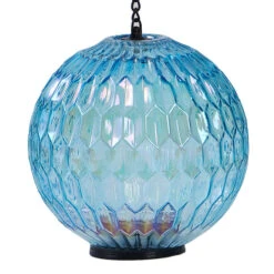 Decorative Hanging Iridescent Outdoor Lantern With Timer, Blue