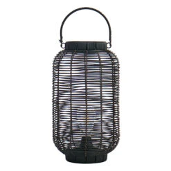 Found & Fable Black Faux Wicker Barrel Lantern With LED Bulb, Large