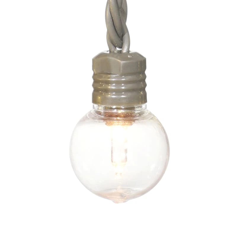 Set the perfect mood year-round with our 100-count clear UL G40 LED clear globe string light set! The warm glow adds fun and excitement to any indoor space. With a 58-foot taupe wire, these lights are easily hung around a room and the safety fuse plug and durable coordinating wire will keep it shining for seasons to come.