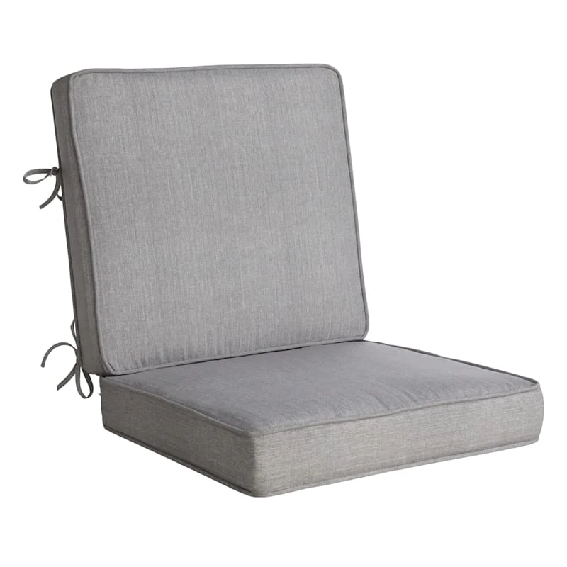 Make moments enjoying the great outdoors even more pleasing with our 2-Piece Tahiti Silver Outdoor Gusseted Deep Seat Cushion Set, perfect for boosting the comfort and style of your favorite outdoor spaces. Create a stunning patio, porch or deck that will be the talk of the neighborhood. Check our overall selection for a variety of shapes, sizes, patterns and colors to fit the personality of your patio.