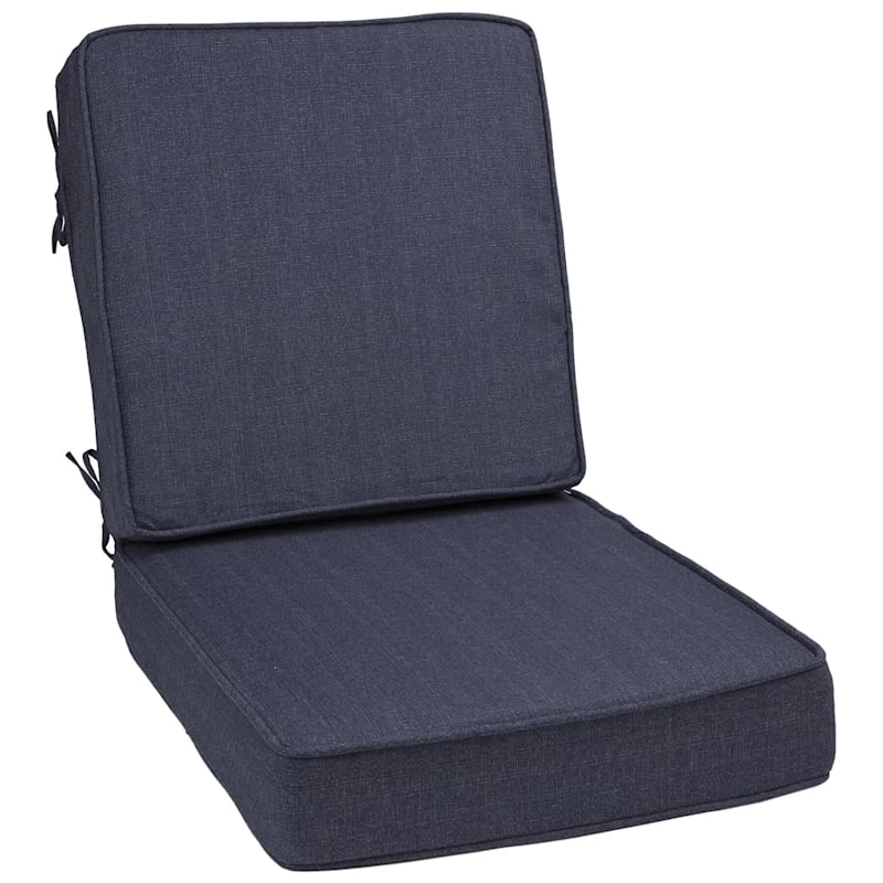 Our outdoor cushions are durable and ready to stand up to the elements. Polyester construction and all-weather capability make our 2-Piece Wheaton midnight blue premium outdoor gusseted deep seat cushion a must-have for outdoor entertaining. With the fashion-forward design, you can create a stunning patio, porch or deck that will be the talk of the neighborhood. Check our overall selection for a variety of shapes, sizes, patterns and colors to fit the personality of your patio.