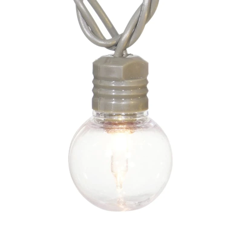 Set the perfect mood year-round with our 40-count clear UL G40 LED clear globe string light set! The warm glow adds fun and excitement to any indoor space. With a 23-foot taupe wire, these lights are easily hung around a room and the safety fuse plug and durable coordinating wire will keep it shining for seasons to come.