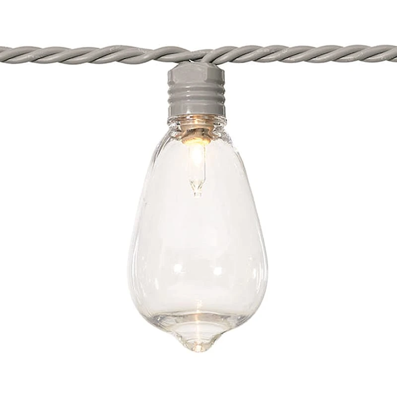 Set the perfect mood year-round with our 40-count clear UL incandescent Edison bulb string light set! The warm glow adds fun and excitement to any indoor space. With a 24-foot taupe wire, these lights are easily hung around a room and the safety fuse plug and durable coordinating wire will keep it shining for seasons to come.