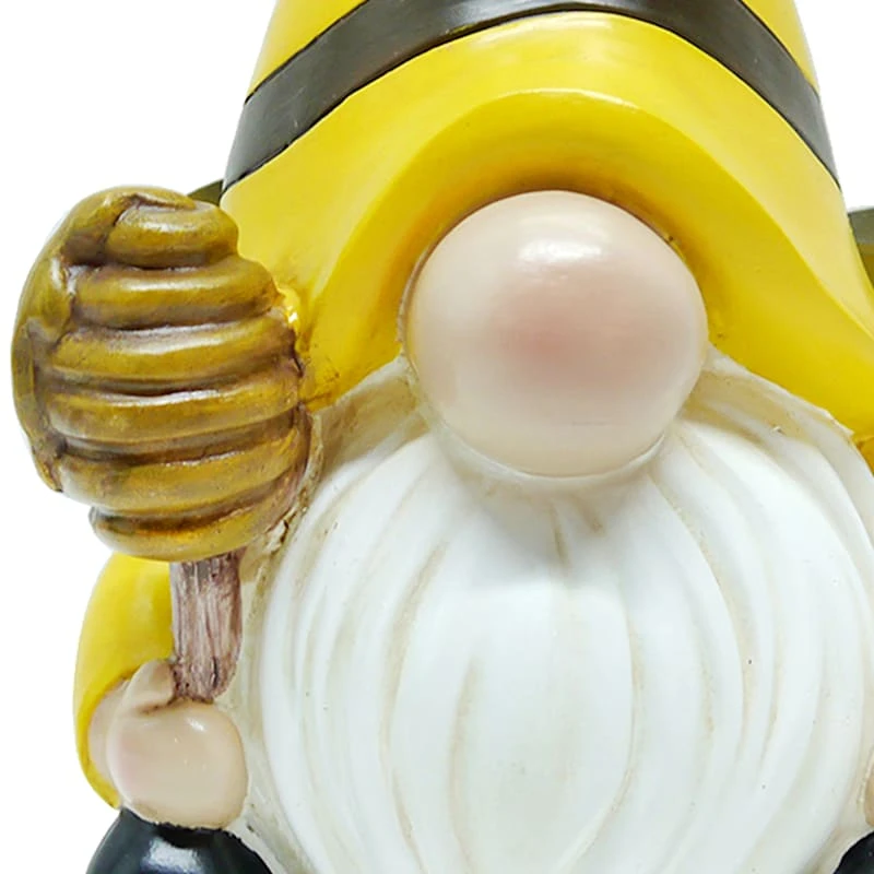 Wow your family and friends with our charming resin bee garden gnome with striped yellow and black hat and honey dipper. He looks like he came straight out of a children�s fairytale! The colorful detailing of this resin figurine draws you in, and it�ll be a welcome addition to your prolific garden for years to come.