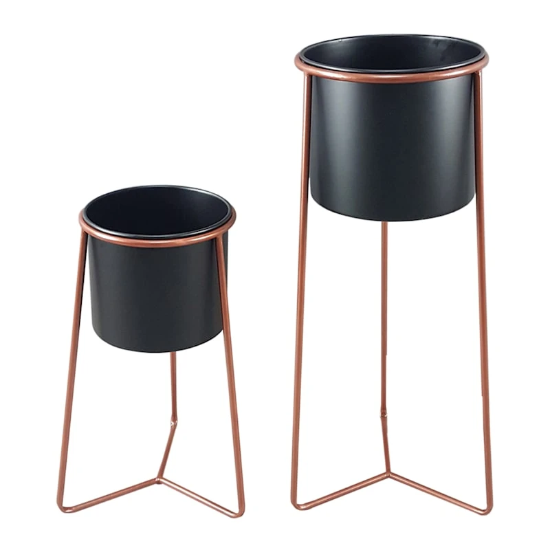 Even if your living room is short on square footage, you can still provide a spot for beloved house plants. Our versatile black and copper metal plant stand is a handy helper. It features a sturdy coppered metal base and a modern black pot that adds amazing personality.