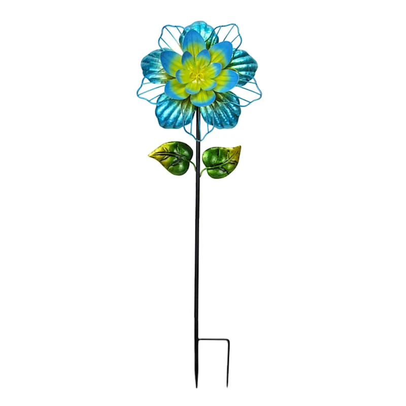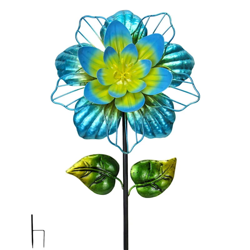 Add a pinch of fun to your garden with our colorful metal 32in. blue and yellow floral bloom outdoor garden stake. Created with love, this detailed metal piece features a pointed base with a detailed floral and leaf design. Everyone will enjoy the charming subject matter tucked into your prolific garden. Made of rust-resistant metal, this garden stake is designed to bring a natural touch to your landscaping.