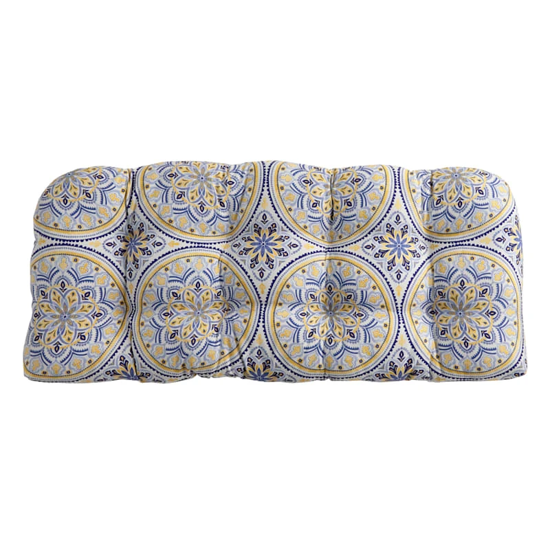 Make moments enjoying the great outdoors even more pleasing with our Castille multi outdoor wicker settee cushion, perfect for boosting the comfort and style of your favorite outdoor spaces. The settee cushion features all-around piping to give it a little personality and look its best amongst the elements.