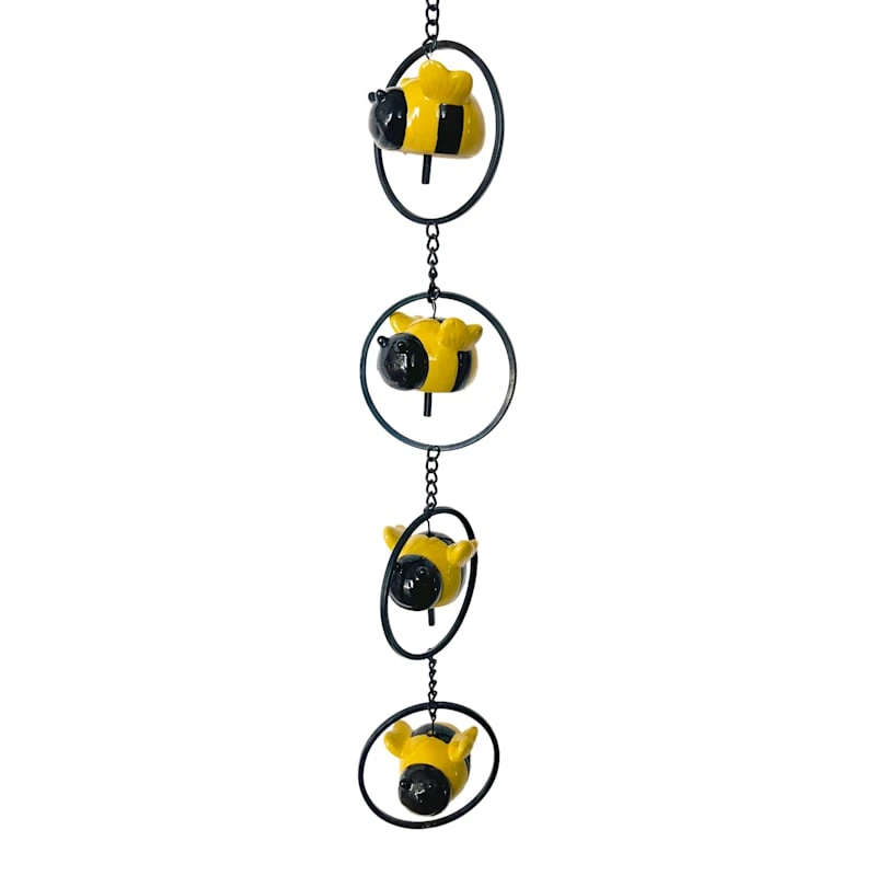 Whimsical black and yellow ceramic bees adorn our tiered metal circle hanging windchime to give a clear and graceful sound. Windchimes are symbolic of serenity and tranquility and are also thought to bring luck to whoever listens to them. The perfect gift for the bee and outdoor garden lover.