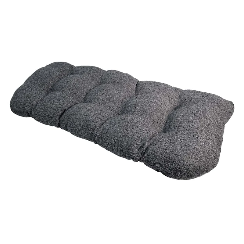 Our outdoor cushions are durable and ready to stand up to the elements. Polyester construction and all-weather capability make this Fiddlestix Dark Grey Outdoor Wicker Settee Cushion a must-have for outdoor entertaining. Create a stunning patio, porch or deck that will be the talk of the neighborhood. Check our overall selection for a variety of shapes, sizes, patterns and colors to fit the personality of your patio.