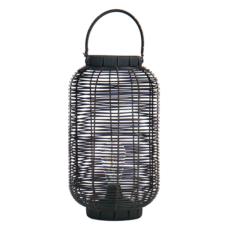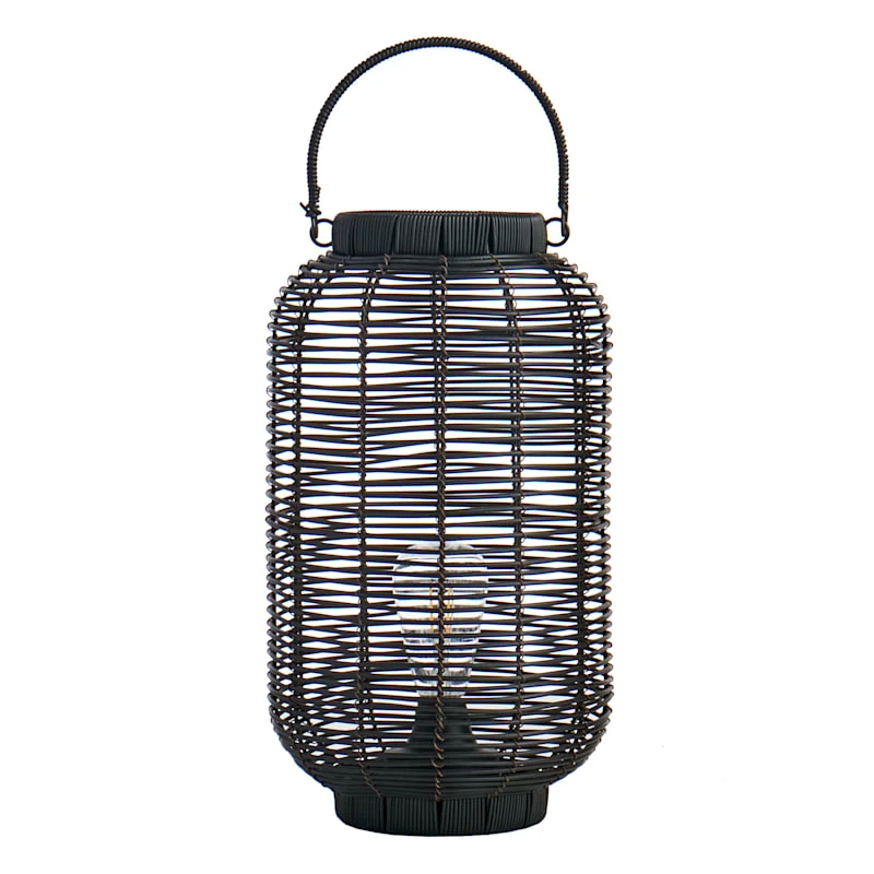 Found & Fable is a new collection that lets you explore what’s right around the corner. Choose your own adventure every day. Savor it all and say yes to what comes next—exclusively At Home. Add a charming touch to any outdoor space with our decorative 16in. natural plastic wicker black barrel lantern. An LED bulb within will illuminate at night, creating a magical glow. The wonderful silhouette is highlighted with a global, natural look. This outdoor lantern will make a stunning display in your garden or on your patio.