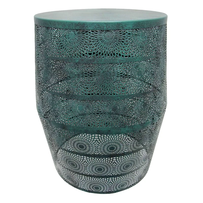 Found & Fable is a new collection that lets you explore what’s right around the corner. Choose your own adventure every day. Savor it all and say yes to what comes next—exclusively At Home. This handy metal cutout plant stand works as a display piece or as a spare seat to in your garden room or patio, or it’s the perfect place to set your drink and nibbles while visiting. Made from weathered look metal with a barrel silhouette and faux tarnish finish. An allover cutout design gives it loads of personality. The stool is designed with a circular cutout motif that’s sure draw attention.