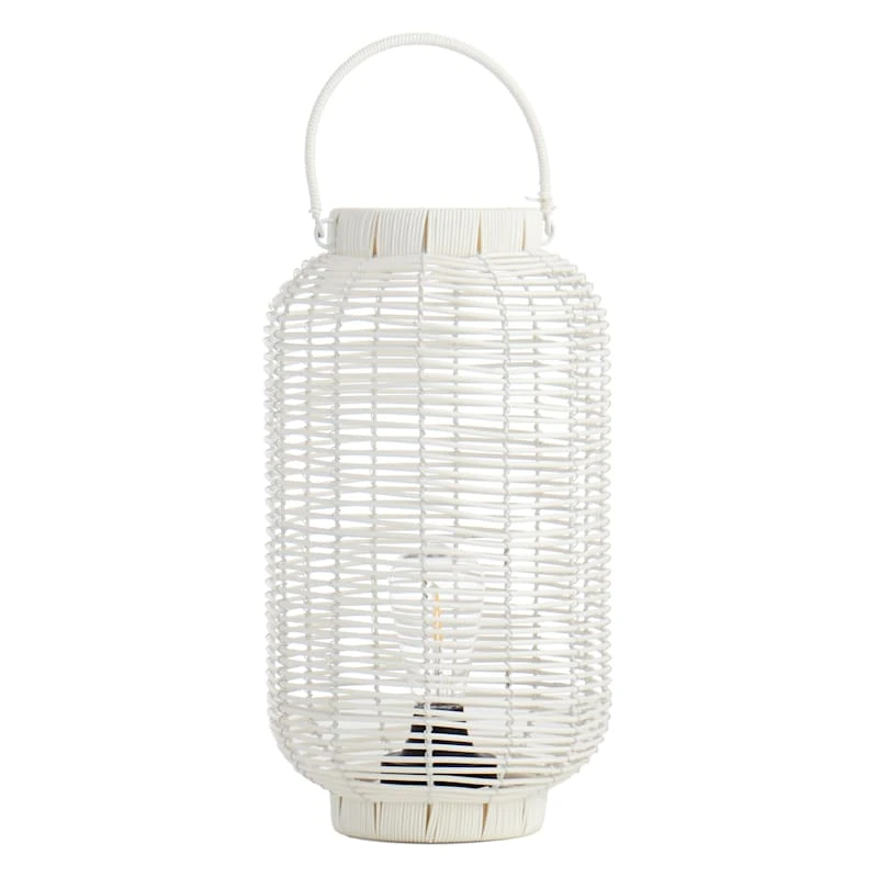 Found & Fable is a new collection that lets you explore what’s right around the corner. Choose your own adventure every day. Savor it all and say yes to what comes next—exclusively At Home. Our 15.5in. white faux wicker barrel LED lantern is the perfect addition to any home decor, inside or out. The illuminating bulb lights from within and adds to the overall ambience. The flexible handle makes it easy to hang from any hook, or it can also be set on the hearth, bookshelf or on the patio table, too.