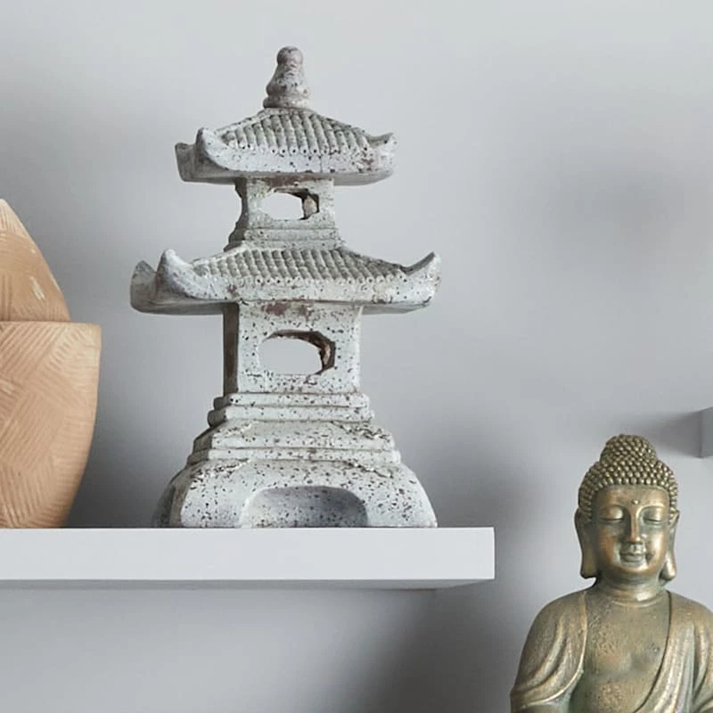 Add to the tranquility and create a calming retreat in your very own backyard. Surrounded by our Buddha statues with juniper and Japanese maples all around, or standing alone in your summer landscape, this magnesium oxide resin Japanese lantern pagoda/pavilion statue will truly create a magical Zen oasis in your beautiful outdoor Oriental garden.