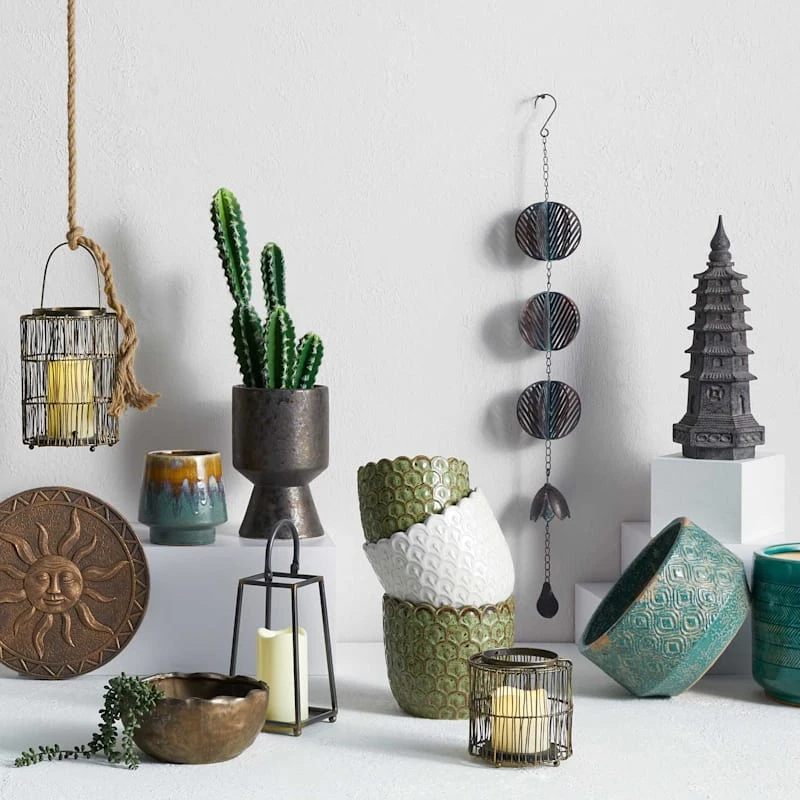Found & Fable is a new collection that lets you explore what’s right around the corner. Choose your own adventure every day. Savor it all and say yes to what comes next—exclusively At Home. Add a charming touch to your garden with our concrete look resin tiered pagoda garden statue. The old world decorative pagoda style motif is framed by a classic design with a pointed finial top. This charming 16in. tower will create a special vibe all while enhancing your outdoor setting.