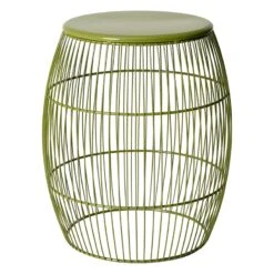 Modern farmhouse meets At Home prices in Honeybloom, our exclusive new brand that celebrates life lived together. This handy barrel plant stand also works as a spare seat to in your garden room or patio, or it’s the perfect place to set your drink and nibbles while visiting. Made from painted green metal with a cage-like design. The stool is highlighted by an eye-catching bright white hue that’s sure draw attention.