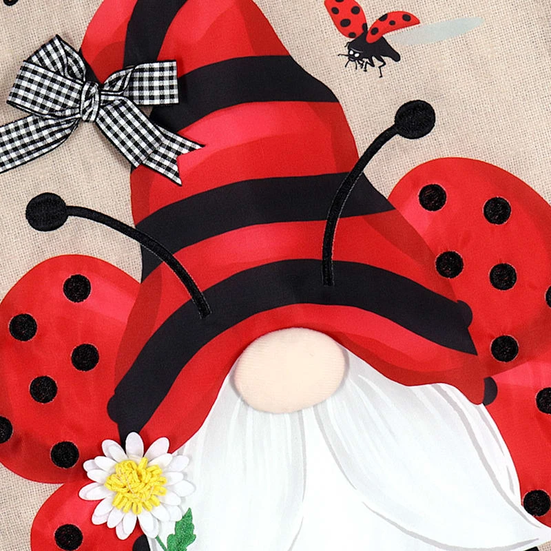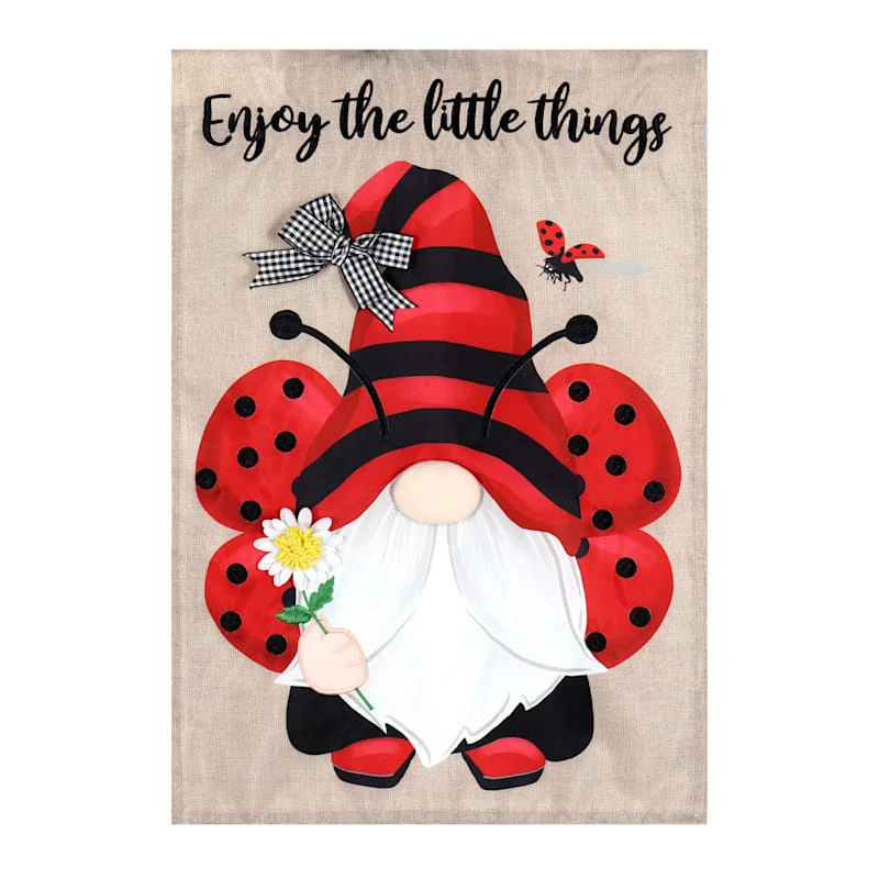 Welcome visitors into your home with our adorable “Enjoy the little things” ladybug gnome garden flag. Featuring a colorful outdoor motif, this welcome sign is a great way to greet your guests. The wonderful multicolor detailing and ladybug, checks and polka dot details are a nice pop to help get the warm days ahead started. This is the perfect spring or summer decoration to welcome in the new season and guests, too.