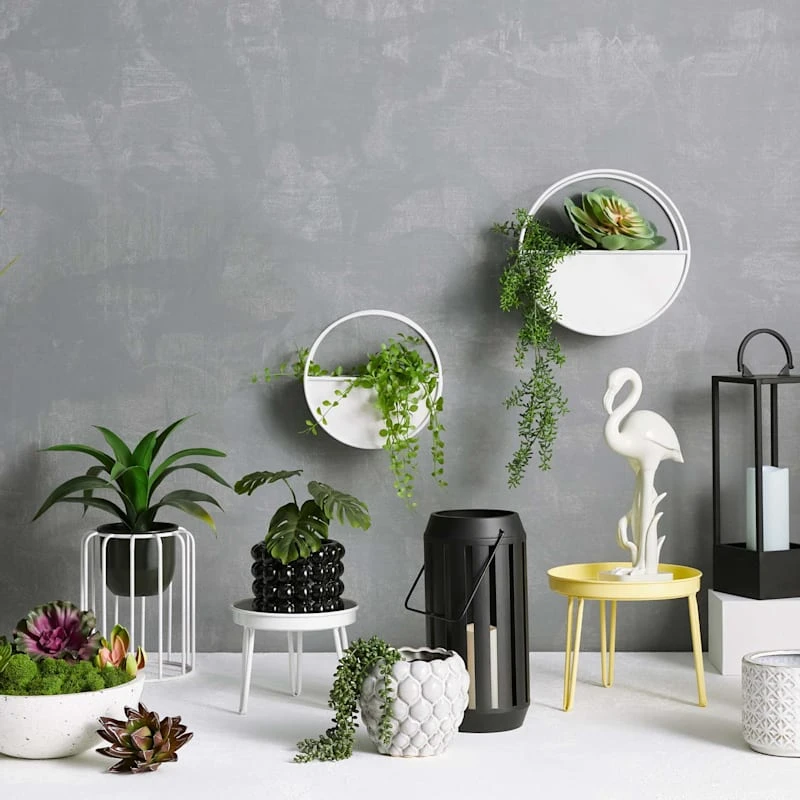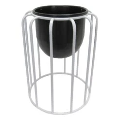 Laila Ali brings the mindset of a world-champion athlete and passion for healthy living to create a modern lifestyle collection with serious style only found At Home. Highlight your green thumb and showcase your annuals and perennials at your front door or add a touch of festive foliage to your deck with our stylish small black and white metal planter stand. More than just a spot to display your gardening skills, this modern cage-like pot has a contemporary appearance with its wonderful stand design. Created to live indoors or out, it’s ready to make your plants pop.