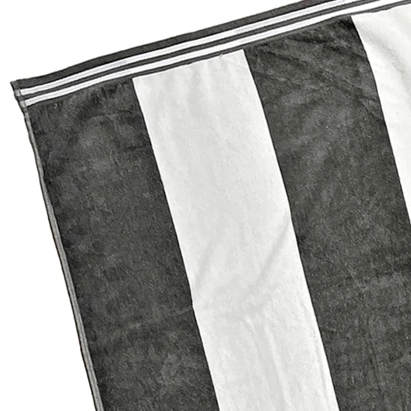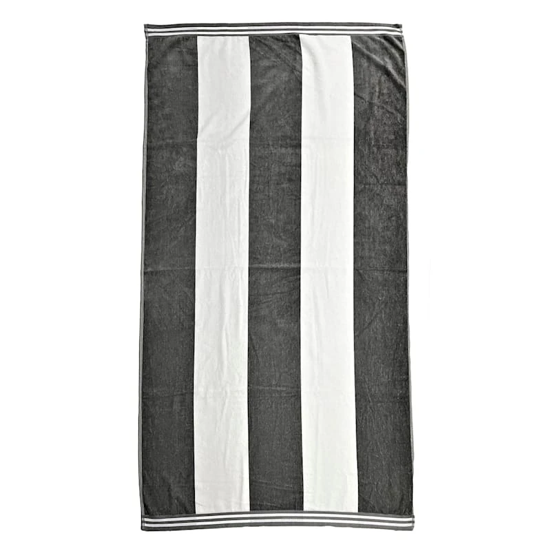 Laila Ali brings the mindset of a world-champion athlete and passion for healthy living to create a modern lifestyle collection with serious style only found At Home. A collection that lets everyone relax in style. Polished finishes and classic hues pair with fun finds. This bold 100% cotton white and grey Cabana stripe beach towel is the perfect choice when you want to wrap up in a comfort after a refreshing dip. The classic style, generous size and bold color palette make it the perfect choice for summertime fun.