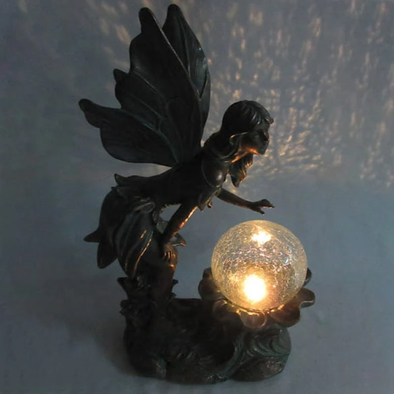 Uniquely designed like a special garden visitor, our resin solar orb fairy figurine combines simplicity with nature. The realistic natural, green and coppery finish makes this lighted statue the perfect addition to any garden setting. It�s easy to place in your gardenscape or patio and is easily going to be one of your favorite outdoor pieces.