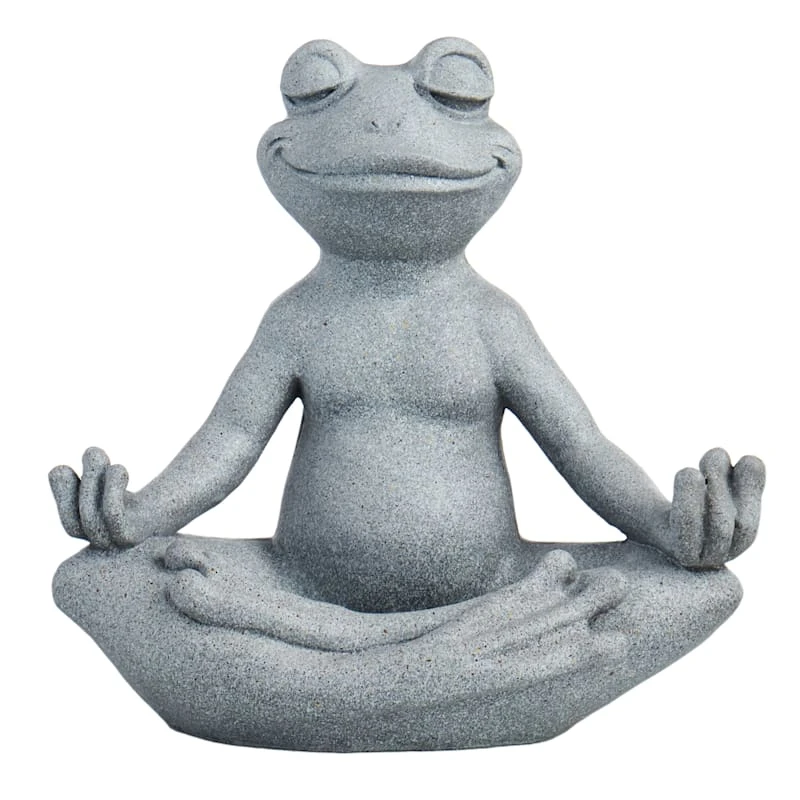 Add charm to your garden or patio with our whimsical frog statue. Wonderfully sculpted of resin with a concrete-like patina that resembles stone. His yoga pose of choice is with legs crossed and hands in prayer. Perfect in a garden or as a companion indoors bringing inner peace to all who enter. Place him on your front porch to greet your guests or release him to nature, creating a peaceful summer vibe.