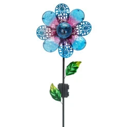 Add a pinch of fun to your garden with our colorful metal 40in. blue multi flower decorative lighted garden stake. Created with love, this detailed metal piece features a dual pointed base with a detailed floral and leaf design. Everyone will enjoy the charming subject matter tucked into your prolific garden. Made of rust-resistant metal, this garden stake is designed to bring a natural touch to your landscaping.