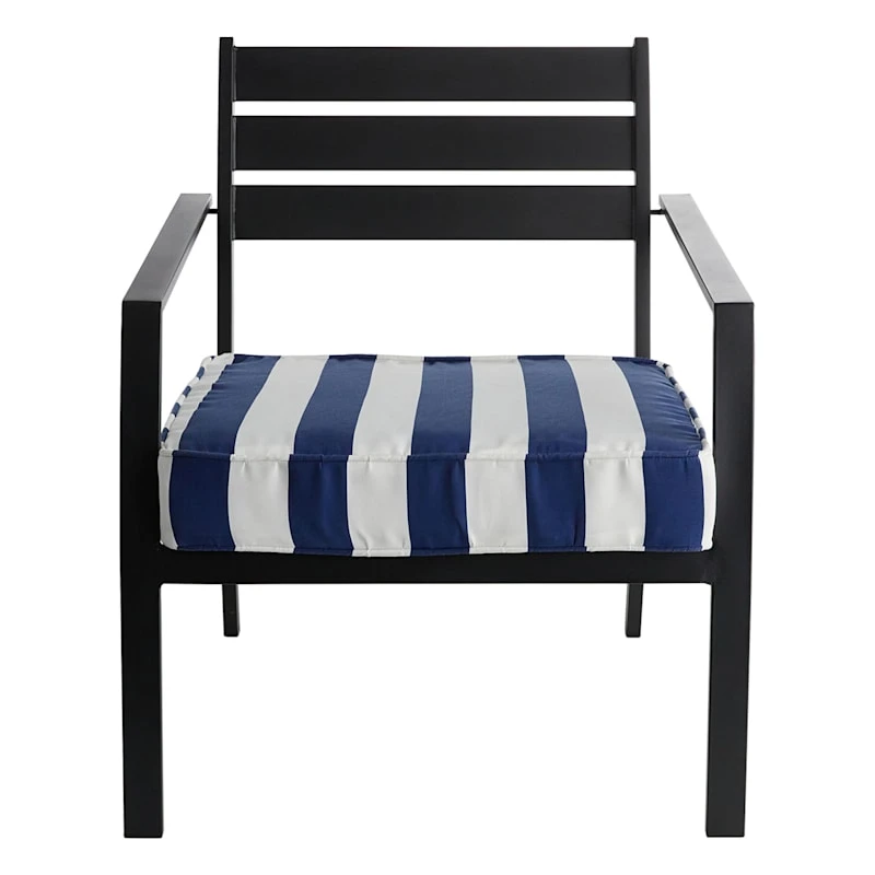 A collection that lets everyone relax in style. Polished finishes and classic hues pair with fun finds. Providence is where elegant settings still feel comfortable and warm—exclusively At Home. Our outdoor cushions are durable and ready to stand up to the elements. Polyester construction and all-weather capability make this navy blue awning stripe deep seat cushion is a must-have for outdoor entertaining. With the fashion-forward navy blue and white design, you can create a stunning patio, porch or deck that will be the talk of the neighborhood. Check our overall selection for a variety of shapes, sizes, patterns and colors to fit the personality of your patio.