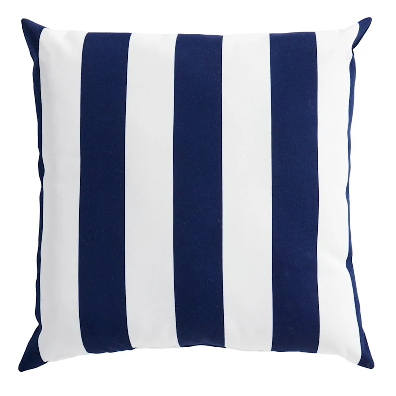 A collection that lets everyone relax in style. Polished finishes and classic hues pair with fun finds. Providence is where elegant settings still feel comfortable and warm—exclusively At Home. Our outdoor cushions are durable and ready to stand up to the elements. Polyester construction and all-weather capability make this navy blue awning stripe square throw pillow is a must-have for outdoor entertaining. With the fashion-forward navy blue and white design, you can create a stunning patio, porch or deck that will be the talk of the neighborhood. Check our overall selection for a variety of shapes, sizes, patterns and colors to fit the personality of your patio.