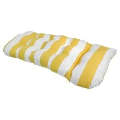 A collection that lets everyone relax in style. Polished finishes and classic hues pair with fun finds. Providence is where elegant settings still feel comfortable and warm—exclusively At Home. Our outdoor cushions are durable and ready to stand up to the elements. Polyester construction and all-weather capability make this yellow awning stripe wicker settee cushion is a must-have for outdoor entertaining. With the fashion-forward yellow and white design, you can create a stunning patio, porch or deck that will be the talk of the neighborhood. Check our overall selection for a variety of shapes, sizes, patterns and colors to fit the personality of your patio.