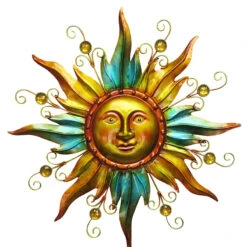 Add a celestial touch to your garden with our golden and turquoise metal sun garden stake. Featuring a multi-tone sun with face and glass bead design, this exquisitely designed stake will be a beautiful addition to any garden.