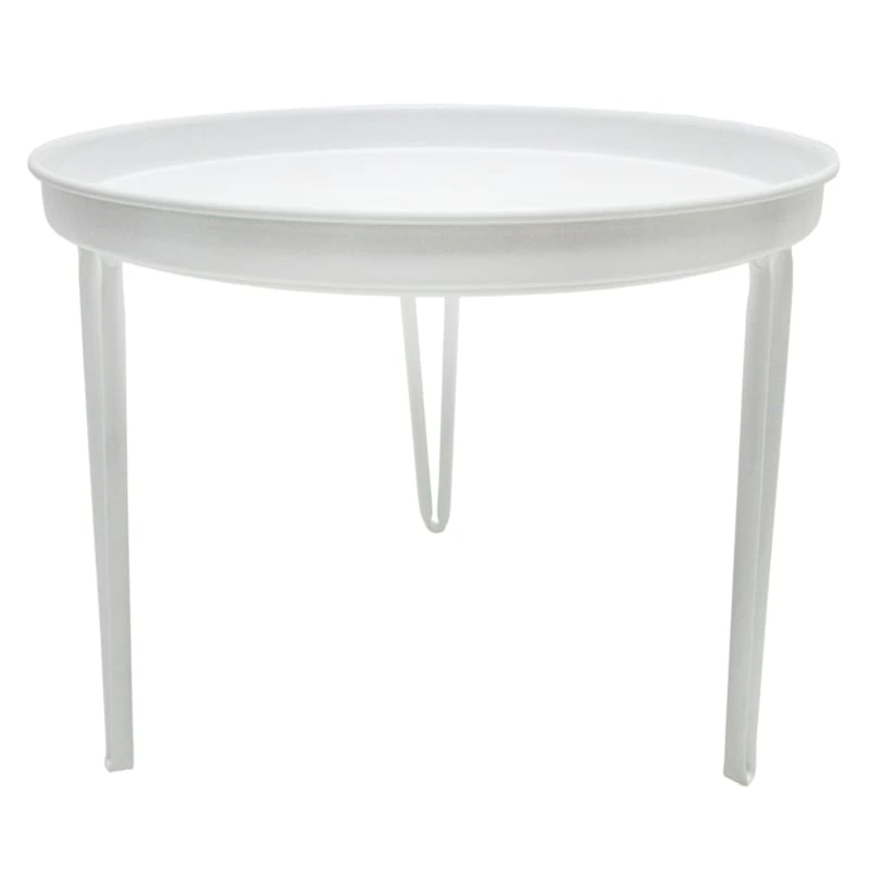 Our 10in. white metal top plant stand/accent table offers all kinds of options in your home decor—charmingly display your plants and use as a cool plant stand. This versatile little table can also be used to display decor or collectibles. This end table/plant stand with modern hairpin legs was engineered for long-term durability with a powder coated painted finish.
