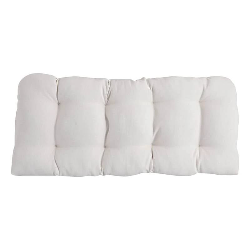 Our outdoor cushions are durable and ready to stand up to the elements. Polyester construction and all-weather capability make this Tristin Heather White Outdoor Wicker Settee Cushion a must-have for outdoor entertaining. Create a stunning patio, porch or deck that will be the talk of the neighborhood. Check our overall selection for a variety of shapes, sizes, patterns and colors to fit the personality of your patio.