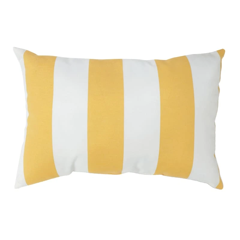 A collection that lets everyone relax in style. Polished finishes and classic hues pair with fun finds. Providence is where elegant settings still feel comfortable and warm—exclusively At Home. Our outdoor cushions are durable and ready to stand up to the elements. Polyester construction and all-weather capability make this yellow awning stripe 14x20in. lumbar throw pillow is a must-have for outdoor entertaining. With the fashion-forward yellow and white design, you can create a stunning patio, porch or deck that will be the talk of the neighborhood. Check our overall selection for a variety of shapes, sizes, patterns and colors to fit the personality of your patio.